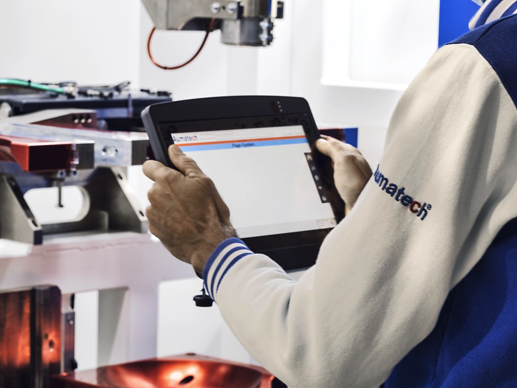 La soluzione Aumatech integra alcuni best in class, tra i quali: full electric, regolazione micrometrica dei piani di lavoro, modularità del riscaldamento della lama, soluzioni smart per evitare l' accumulo dello sfrido sulla lama, scansione termografica ad infrarossi che precede la saldatura.
